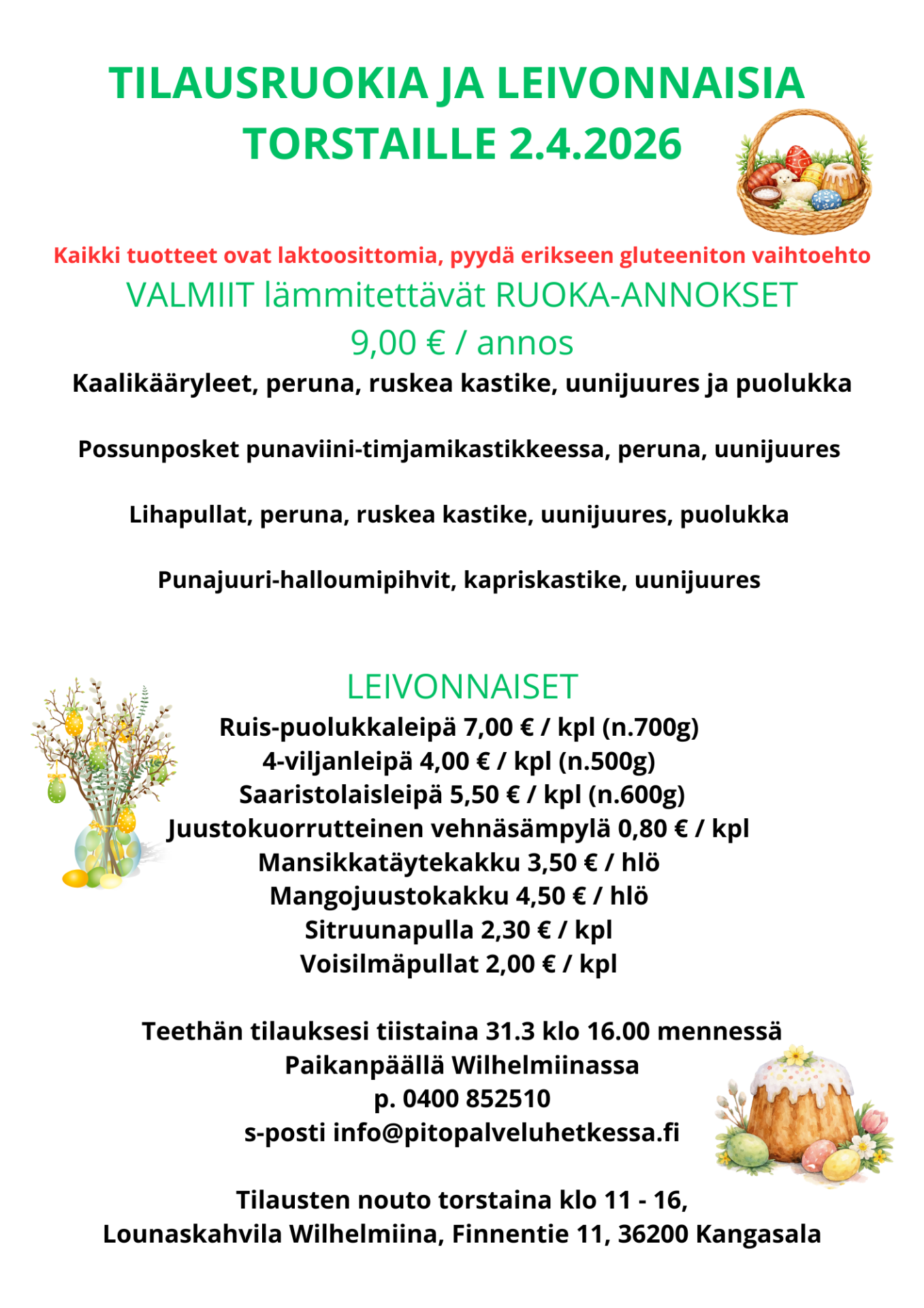 Teethän tilauksen tiistaina 31.3.klo 16 mennessä - nouto Lounaskahvila Wilhelmiinasta to 2.4 klo 11 - 16